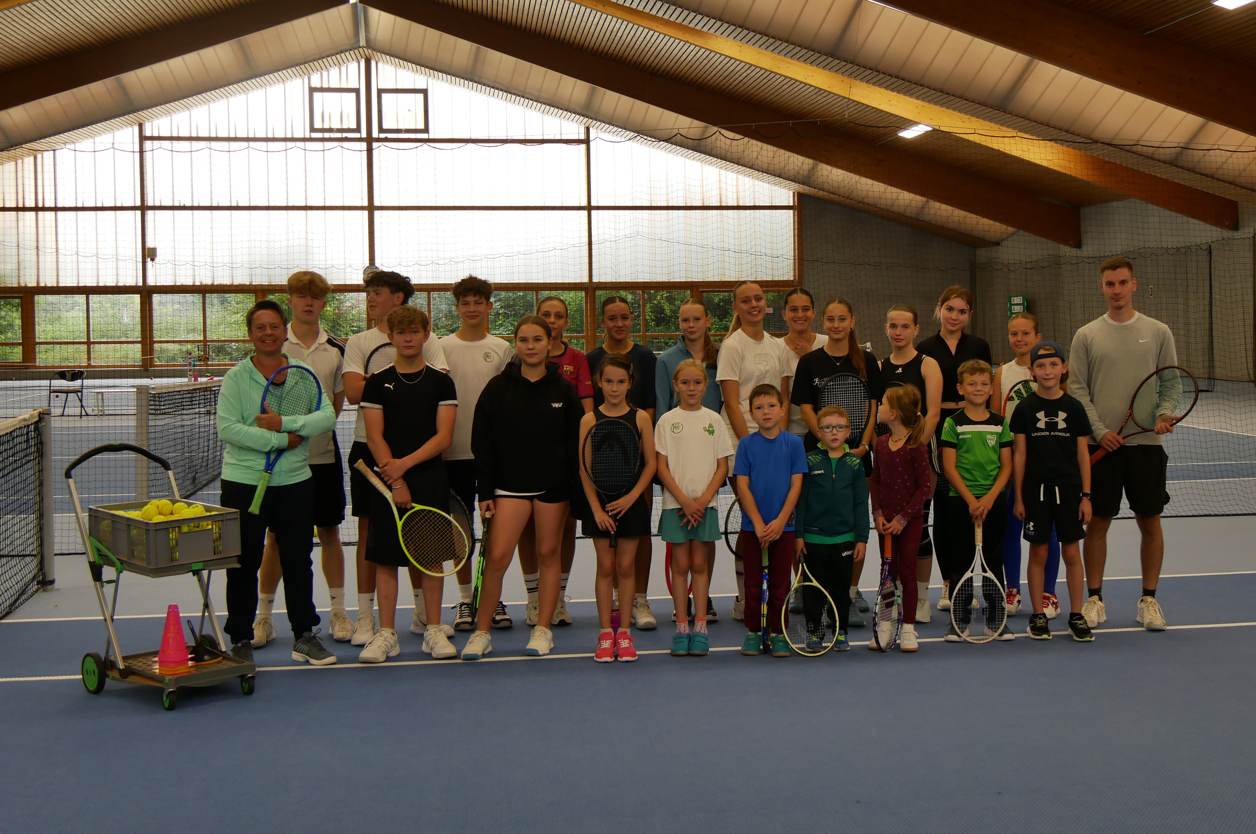 Nachdem Timmy Becker kurzfristig sein geplantes 2. Tenniscamp in der letzten Ferienwoche absagte, übernahm Anke Wallenhorst im Quereinstieg die gesamte Organisation des Camps. In nur knapp 2 Wochen erarbeitete sie einen Wochenplan mit vielfältigen Technikschwerpunkten, einen Ausflug ins Planetarium, ein abschließendes Turnier mit Wanderpokal und vielem mehr. Als das Camp dann am 8. August startete, stand einer Woche Spaß, Verbesserung und leckerem Essen nichts mehr im Wege.